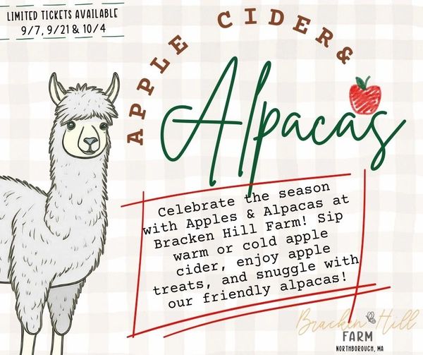 Kick off fall with cozy vibes at Bracken Hill Farm — warm & cold apple cider, sweet apple treats, and unforgettable cuddle time with alpacas. They’ll be roaming for pets, selfies, and snuggles, making this the ultimate fall photo op!