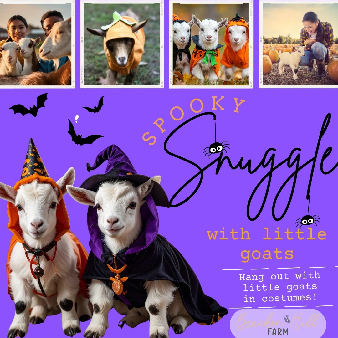 Even our little goats are getting into the Halloween spirit! Come by for a snuggly, spooky session with our younger goats—dressed up in silly seasonal costumes. You’ll get plenty of time to cuddle, play, and laugh with them while enjoying the cozy fall atmosphere of the farm. Book on the calendar below!
