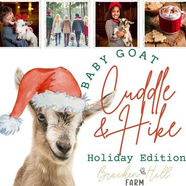 Join us all December long for our special cuddle and hikes. Little goats, cookies and warm cocoa.