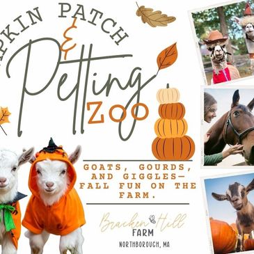 Get ready for an unforgettable fall experience where you can pick a pumpkin, cuddle and play with adorable baby goats, snap the cutest selfies with alpacas, pet our majestic horses, mini donkey & cow! We'll have pumpkins, apple cider and seasonal treats for sale also!