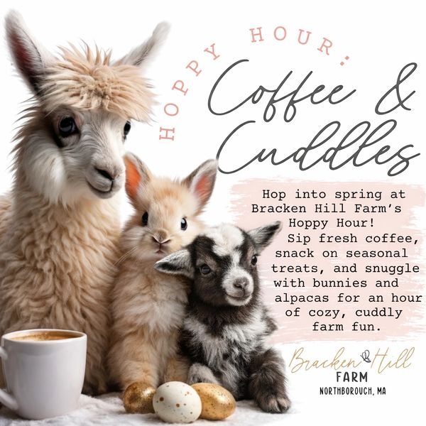 Enjoy a relaxing morning inside our rustic barn where our friendly alpacas roam freely, and gentle bunnies are ready for snuggles in a quiet cuddle corner. Sip freshly brewed coffee or cocoa and enjoy a spread of seasonal treats —all while soaking up the slow, joyful pace of farm life.